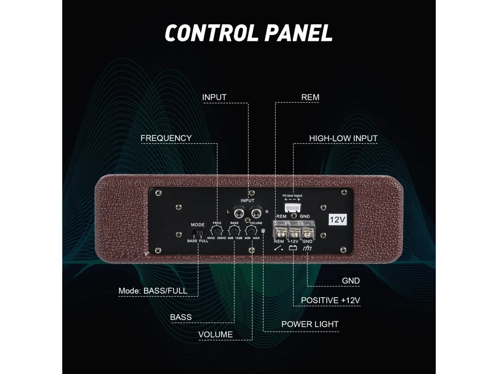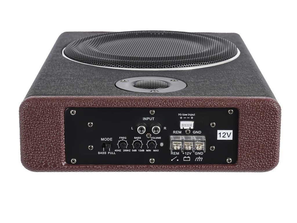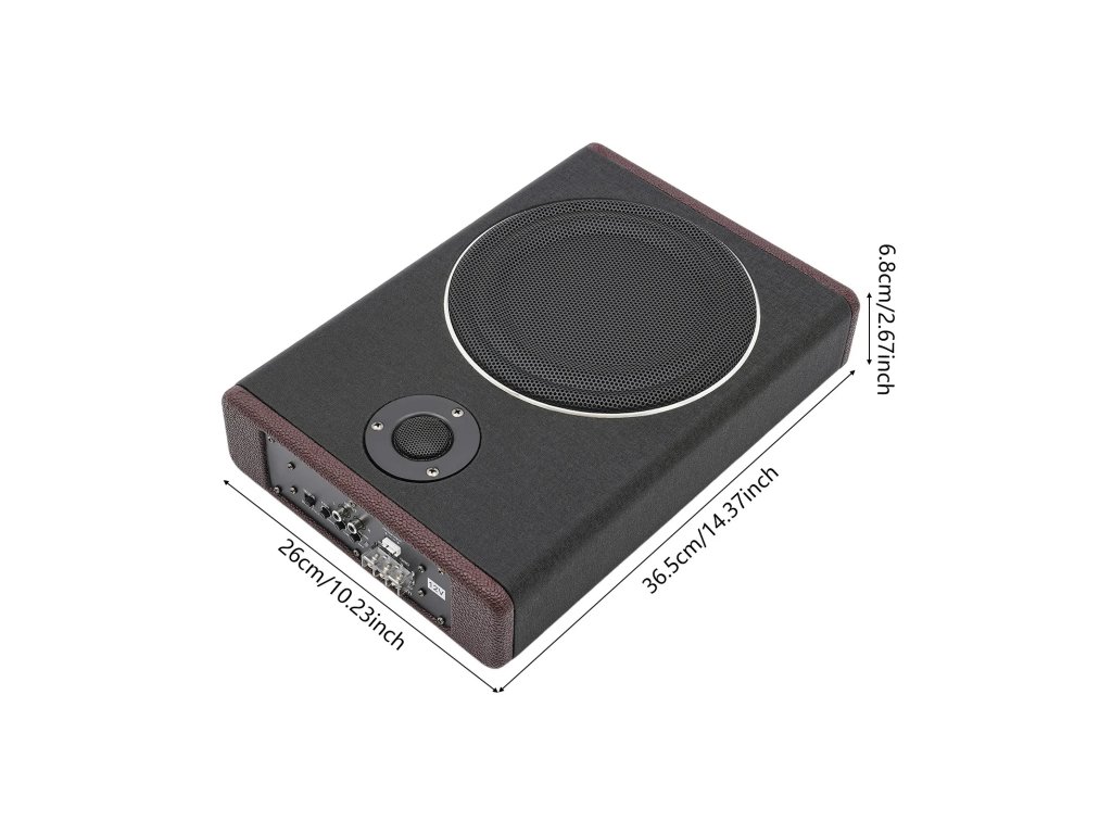 NOVÝ 8palcový ultra tenký autorádio pod sedadlo (37*25*7,5 cm), aktivní full-range subwoofer (s výškami), basový box, vestavěný zesilovač, DC 12V 600W, vysoce výkonný reproduktor 0-12dB