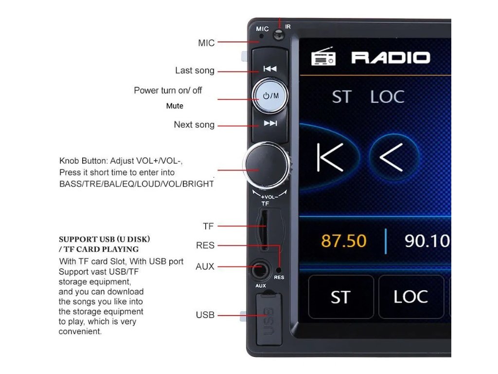 - Autorádio Podofo 7010B