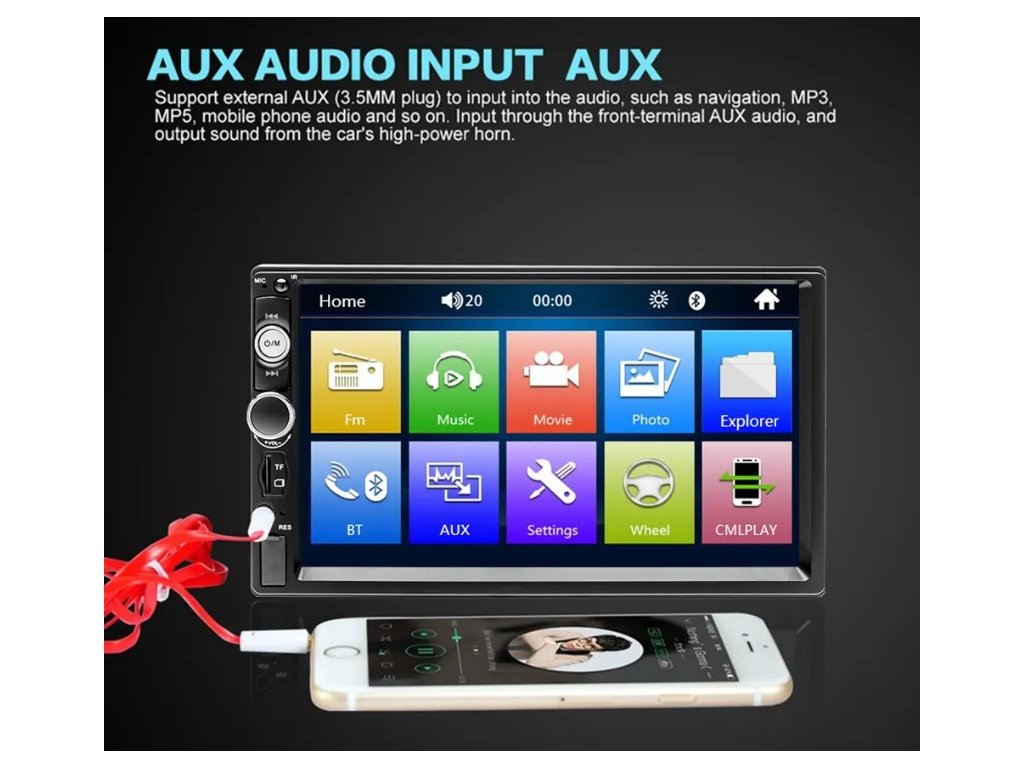 Inovativní 2DIN autorádio Podofo s možností nastavení podsvícení nabízí široké spektrum funkcí. Uživatelsky přívětivý 7" displej, který reaguje na dotyky. Bluetooth technologie umožňuje pohodlné streamování hudby a handsfree volání. Jeho výkon dosahuje vynikajících 4 × 45 W, což zajišťuje kvalitní zvukový výstup. Přední vstup AUX In, USB port a slot pro SD karty zajišťují snadné připojení většiny externích zařízení. Aplikace MirrorLink přináší snadné propojení s vaším mobilním telefonem, což umožňuje promítání obsahu telefonu na displeji. Displej může také zobrazit obraz z vaší zpětné kamery. Uživatelské menu je dostupné i v českém jazyce, což zvyšuje přístupnost a pohodlí při používání.