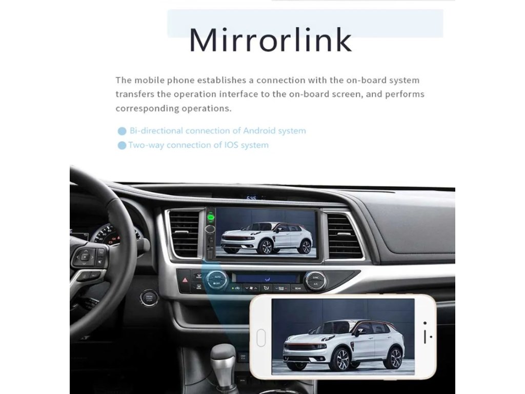 Funkce USB MirrorLink umožňuje snadné promítání obsahu vašeho telefonu na displeji autorádia. Tento inovativní prvek umožňuje například sdílení GPS navigace z vašeho mobilního zařízení na displeji vašeho 2DIN autorádia. Možnost sdílení obrazovky telefonu přes tuto funkci je praktickým a užitečným řešením.