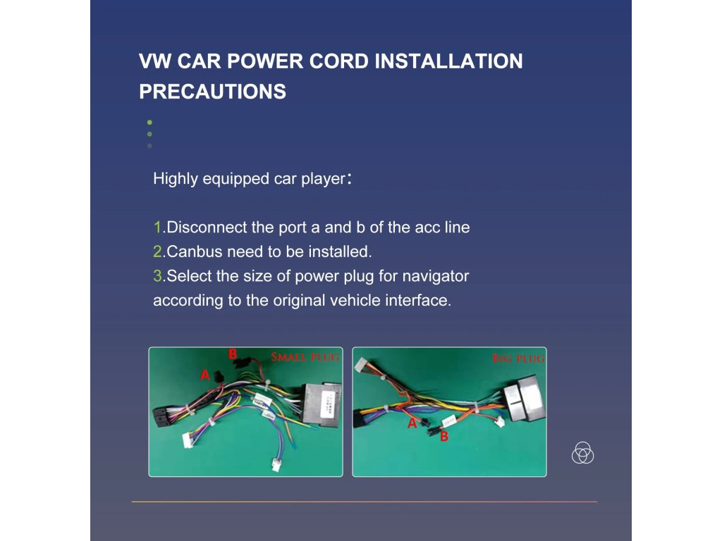 Doporučujeme vždy nejdříve zařízení připojit a odzkoušet všechny funkce (např. ovládání z volantu, aktivace rádia, atd…) a až po úspěšném odzkoušení rádio namontovat. Pokud bude rádio jevit známky použití například otlačené šrouby, montážní úchyty, není možné ho vrátit jako nové a je již dle obchodních podmínek bráno jako použité.