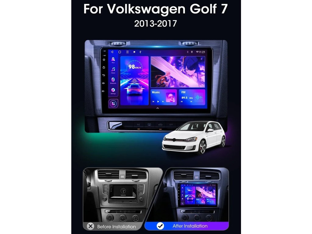 VW Golf 7 Autorádio Mekede - černý rámeček