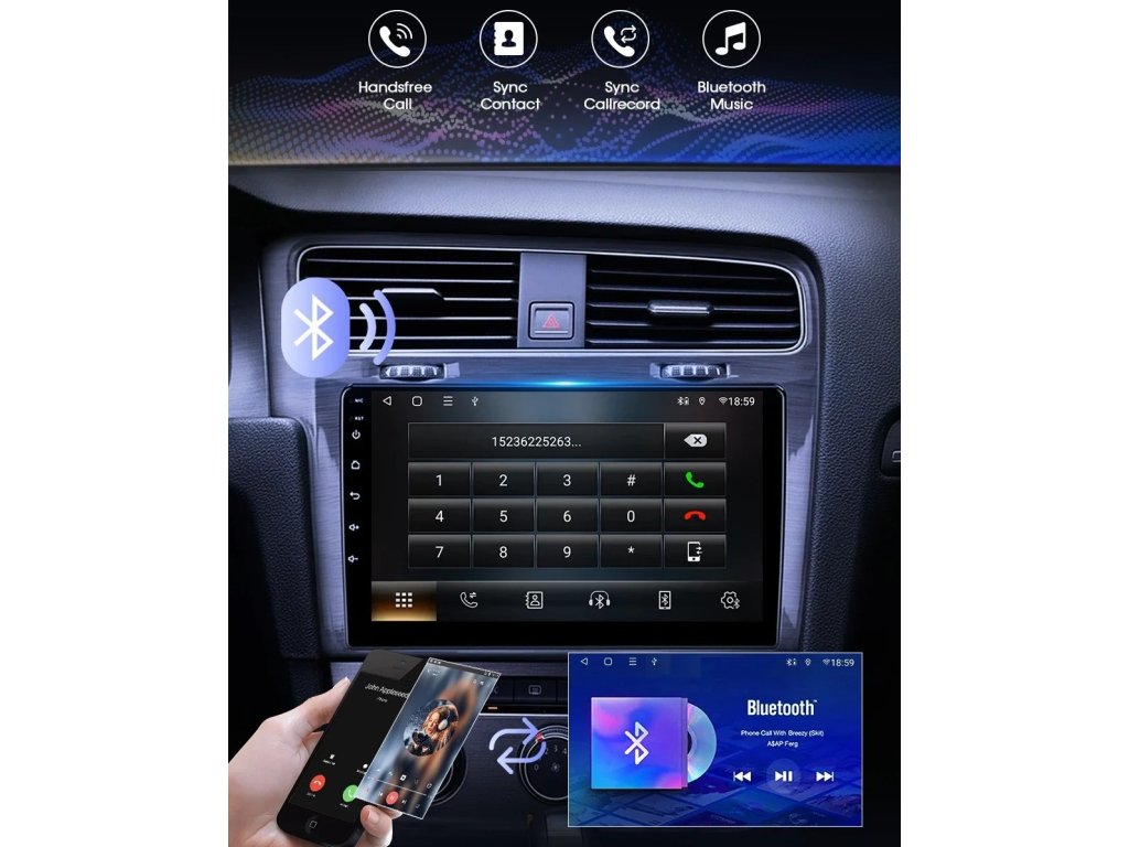 ●FM/AM/RDS rádio: Online hudbu lze přenášet do autorádia přes FM, abyste si mohli vychutnat originální autorádio, 30 přednastavených rozhlasových stanic, špičkový rádiový čip, výkonnou redukci šumu a schopnost proti rušení, podpora FM/AM Funkce RDS, Jasné vyhledávání kanálů a nízký šum
