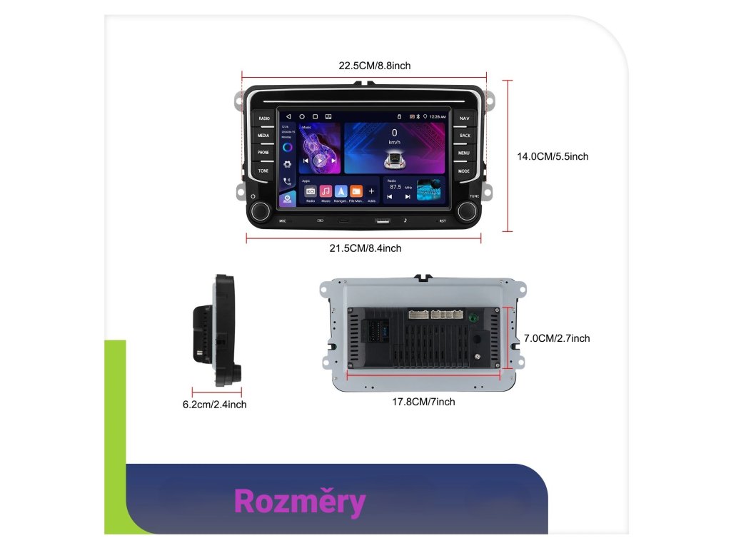 Nová verze toho rádia nabízí dostatečně velkou paměť 64GB pro vaše aplikace, hudbu i videa, operační paměť 2GB aby rádio nemělo problém s plynulostí a Android 15 s novými funkcemi, vylepšené umístění USB zásuvek na panelu rádia.
