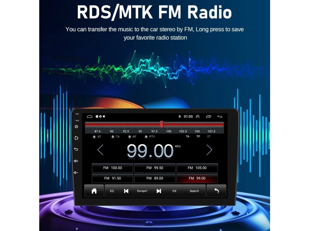 ●FM/AM/RDS rádio: Online hudbu lze přenášet do autorádia přes FM, abyste si mohli vychutnat originální autorádio, 30 přednastavených rozhlasových stanic, špičkový rádiový čip, výkonnou redukci šumu a schopnost proti rušení, podpora FM/AM Funkce RDS, Jasné vyhledávání kanálů a nízký šum