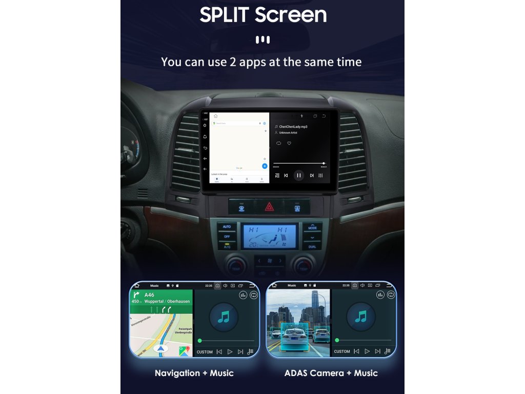 ●Funkce rozdělené obrazovky: lze zobrazit dvě stránky současně, například zobrazení navigace a hudby současně