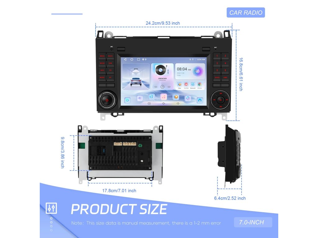 Vylepšená verze toho rádia nabízí dostatečně velkou paměť 64GB pro vaše aplikace, hudbu i videa, operační paměť 2GB aby rádio nemělo problém s plynulostí a Android 13s novými funkcemi.