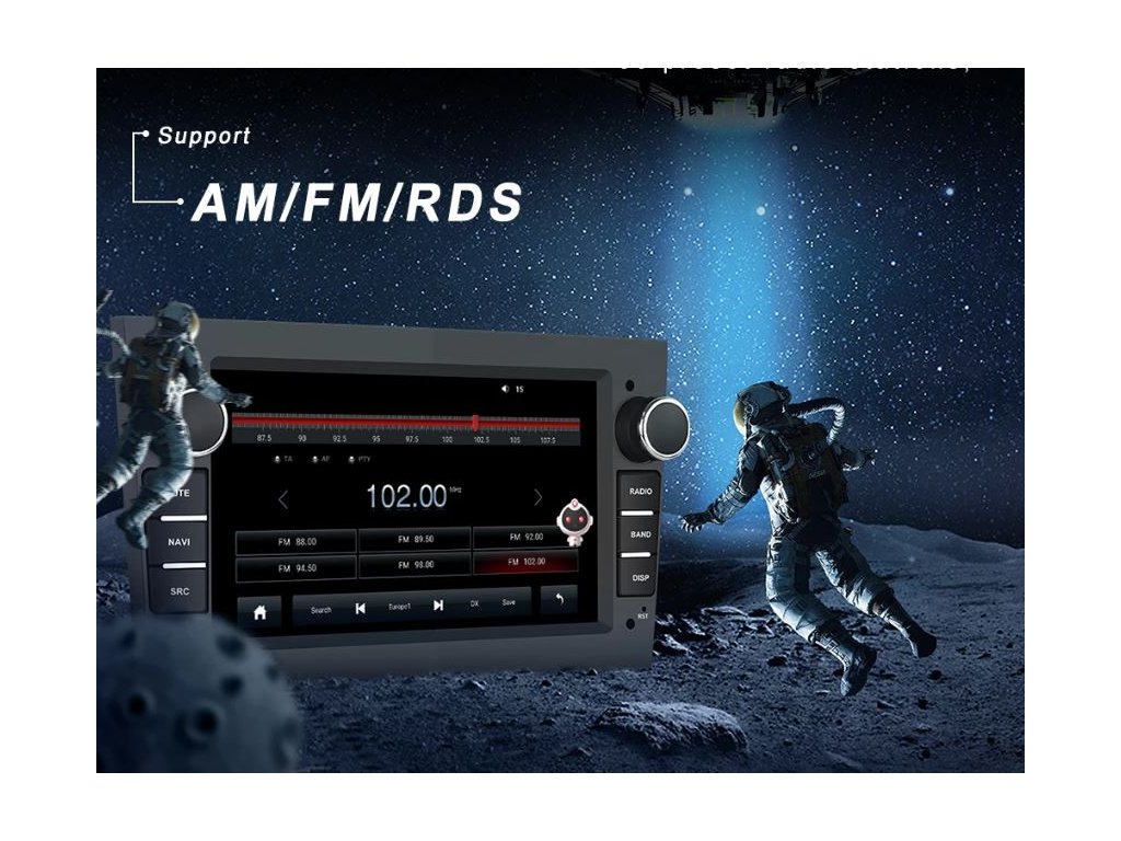 ●FM/AM/RDS rádio: Online hudbu lze přenášet do autorádia přes FM, abyste si mohli vychutnat originální autorádio, 30 přednastavených rozhlasových stanic, špičkový rádiový čip, výkonnou redukci šumu a schopnost proti rušení, podpora FM/AM Funkce RDS, Jasné vyhledávání kanálů a nízký šum
