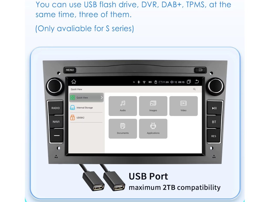 Vylepšená verze toho rádia nabízí dostatečně velkou paměť 64GB pro vaše aplikace, hudbu i videa, operační paměť 2GB aby rádio nemělo problém s plynulostí a Android 14 s novými funkcemi.