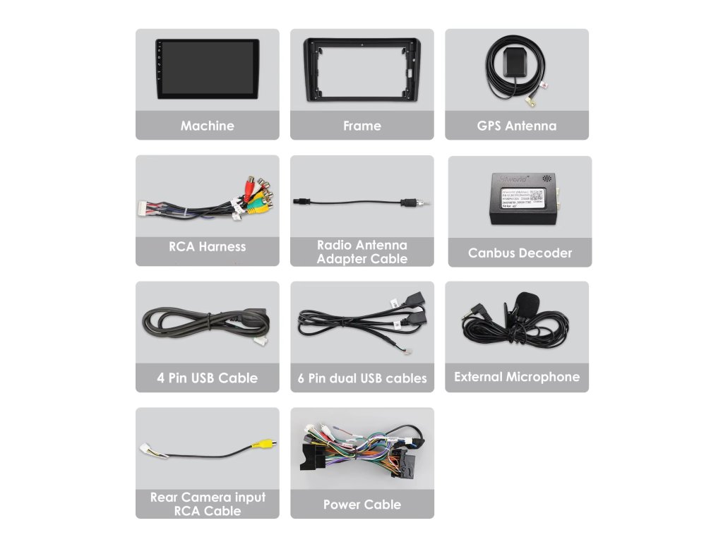 Doporučujeme vždy nejdříve zařízení připojit a odzkoušet všechny funkce (např. ovládání z volantu, aktivace rádia, atd…) a až po úspěšném odzkoušení rádio namontovat. Pokud bude rádio jevit známky použití například otlačené šrouby, montážní úchyty, není možné ho vrátit jako nové a je již dle obchodních podmínek bráno jako použité.