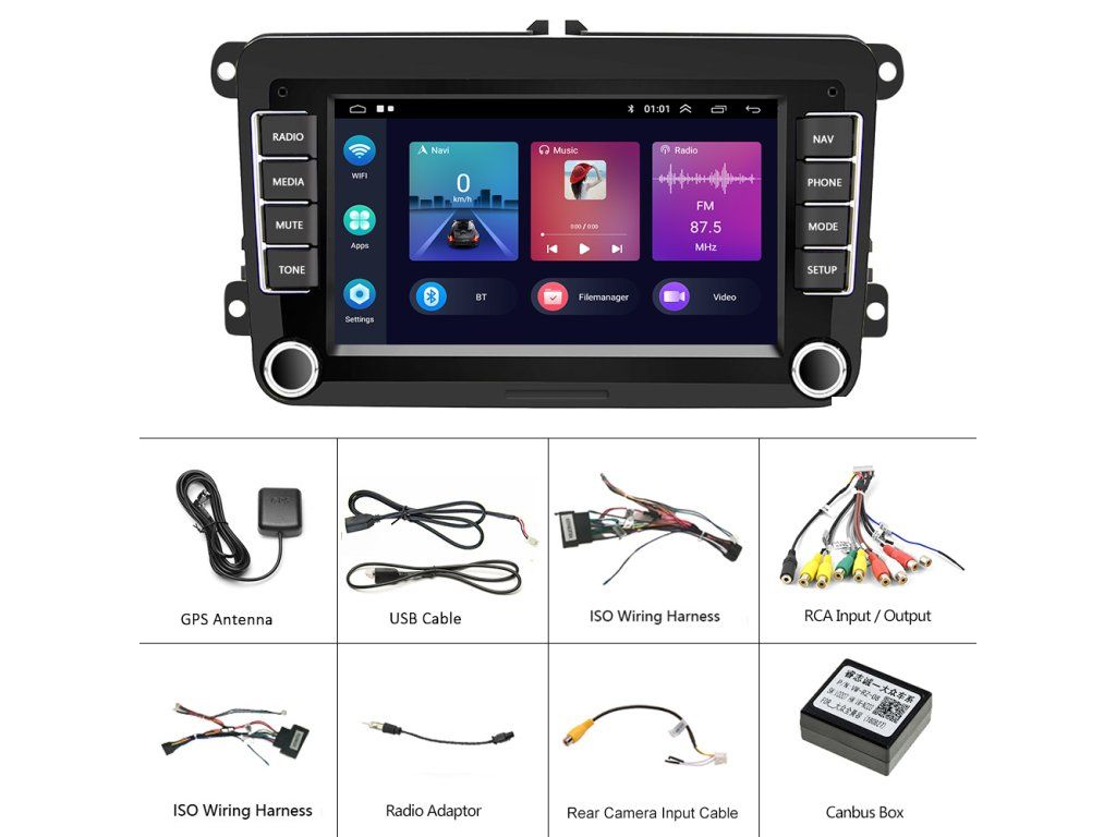 ●FM/AM/RDS rádio: Online hudbu lze přenášet do autorádia přes FM, abyste si mohli vychutnat originální autorádio, 30 přednastavených rozhlasových stanic, špičkový rádiový čip, výkonnou redukci šumu a schopnost proti rušení, podpora FM/AM Funkce RDS, Jasné vyhledávání kanálů a nízký šum